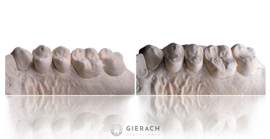 Links: Modelldetails vor dem Einschleifen. Rechts: Das Ausmaß des Einschleifens bei einem Unterschied von 1,2mm.